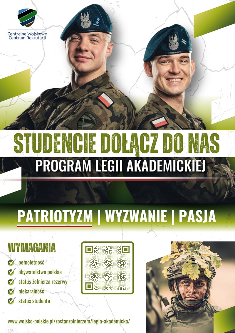W ramach programu, w Auli Wydziału Matematyki i Informatyki (sala nr 1056), 05.12.2025 o godzinie 11:30 odbędzie się spotkanie z pracownikami Wojskowego Centrum Rekrutacji w Białymstoku. Wstęp wolny. Zapraszamy wszystkich studentów.